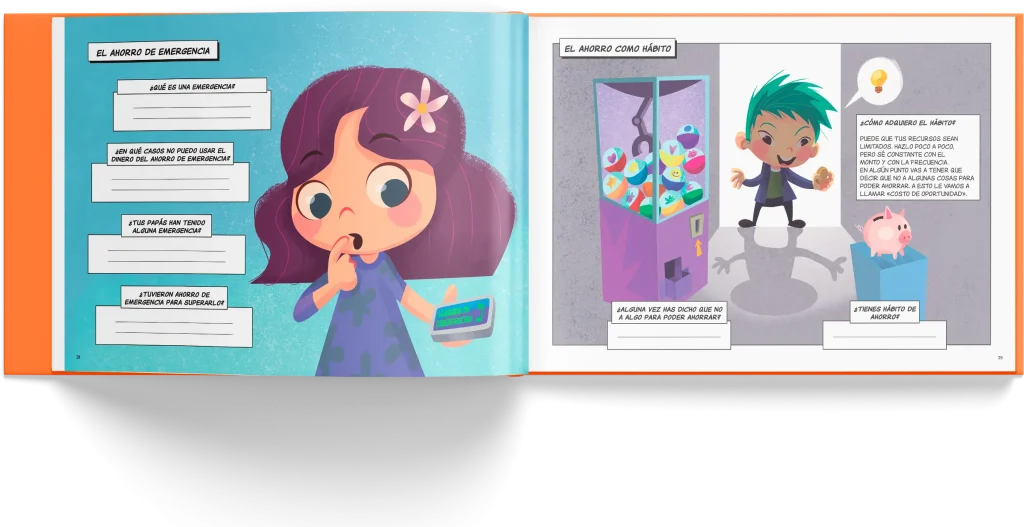 Nuestros libros están diseñados para enseñar habilidades clave: pensamiento lógico, manejo del dinero y creatividad emprendedora.
